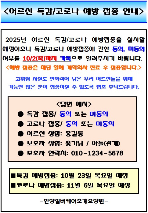 Á¦¸ñ 2025³â ¾î¸£½Å ´ë»ó µ¶°¨ ¹× Äڷγª ¿¹¹æÁ¢Á¾ ¾È³»