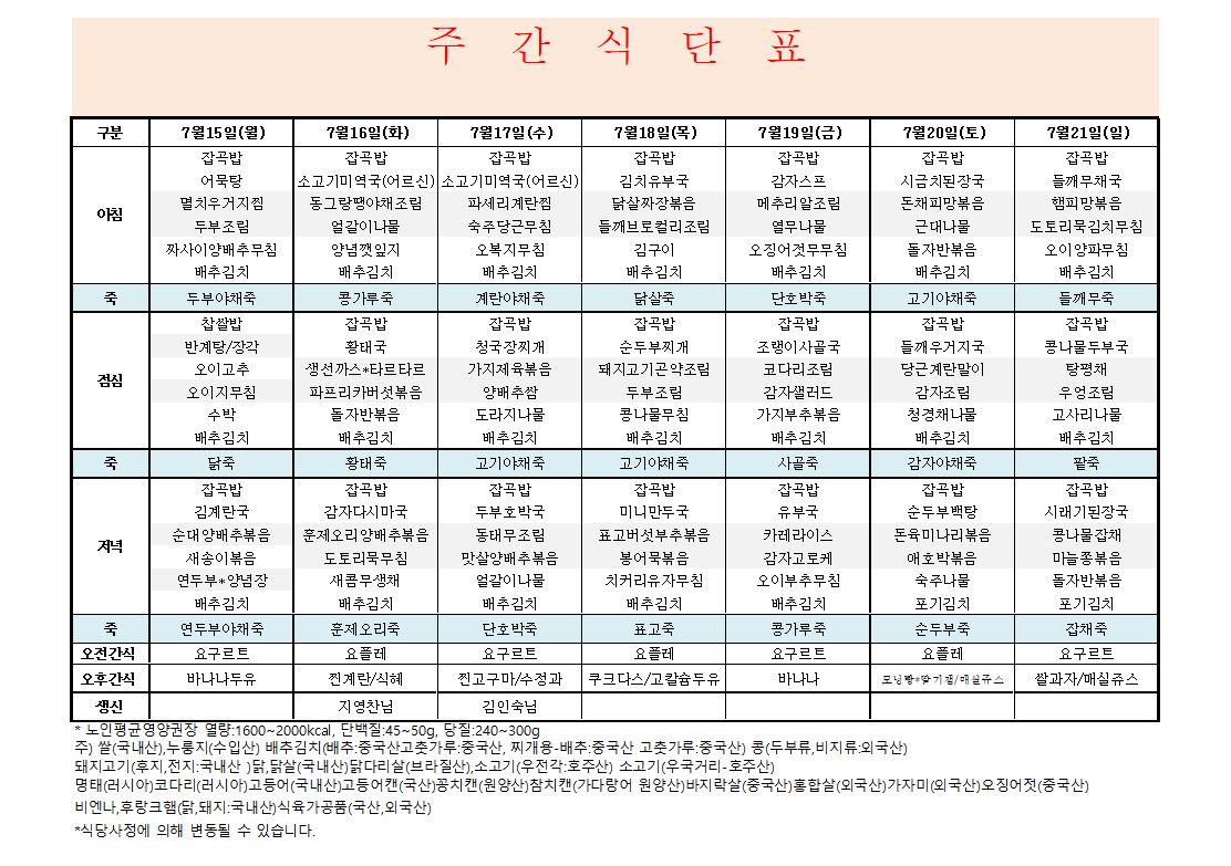 7¿ù ´Ù¼¸Â°ÁÖ ½Ä´ÜÇ¥
